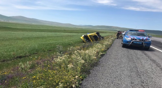 Ardahan-Kars karayolunda tırın şarampole devrildiği kazada 1 kişi yaralandı.