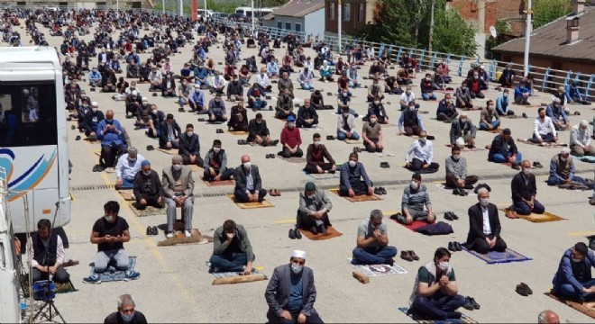 6 bin metrekare üzerinde kurulu olan alanda sosyal mesafe kuralları gözetilerek çizilen saflar tamamen doldu.