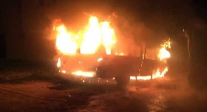 Aziziye'nin Atlı Konak mahallesinde bir minibüs bilinmeyen bir sebepten dolayı yandı.