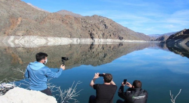 Baraj sularının su seviyenin bir hayli düşmesinin ardından kayalıkta su kirecinden oluşan figürler bölgedeki insanların dikkatini çekiyor. Çeşitli şekilleri gören vatandaşlar resim çekilmeyi ihmal etmiyorlar. Dağın eteklerindeki kireçlenme suya yansıyınca ortaya ilginç görüntü çıkıyor.