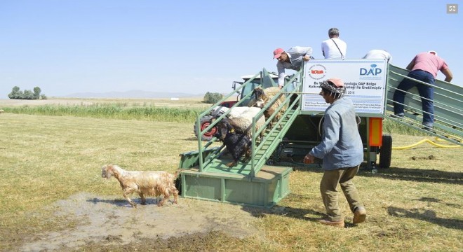 Doğu Anadolu Bölgesi'nin Türkiye'deki küçükbaş hayvancılığın yüzde 26'sını karşıladığını belirten, DAP İdaresi Başkanı Adnan Demir, mobil koyun banyoluğunun merada hayvanın bulunduğu ortamlara rahatlıkla kurulduğunu dile getirerek, "Özellikle küçükbaş hayvan yetiştiricilikte en önemli konu, dış parazit hastalıklarıdır. Hayvanların yılda iki defa ilaçlı banyo ile dezenfekte edilmesi gerekiyor. Dış parazitler sürekli kan emdikleri için, hayvanlarda deri hastalıklarına, tedirginlik ve strese sebebiyet veriyor. Bu da verim kaybına neden oluyor. İnsanlara etiyle, sütüyle, yünüyle yararlı olan hayvanları dış parazitlere karşı korumak amacıyla, yılda en az iki kez ilaçlamak gerekiyor. Bu amaçla geleneksel yöntemlerle yapılmış olan bu dezenfekte işlemleri çok meşakkatli bir yöntemdi. Küçükbaş hayvanlarımızın dezenfekte edilmesi için DAP İdaresi olarak böyle bir mobil koyun banyolu projesini devreye koyarak, yetiştiricilerimize büyük bir kolaylık sağladık. Banyo sonrasında hayvanlar parazitten temizlendikleri gibi, yapağıları da kısmen pislikten arınmış halde ekonomiye kazandırılmış oluyor. Amacımız, hayvanların verimliliğini artırmak” dedi.