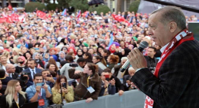 Ne kadar özetlerse özetlesin anlatmakla bitmeyen eser ve hizmetleri olduğunu dile getiren Cumhurbaşkanı Erdoğan, "Türkiye'yi 81 vilayetinin her biriyle nasıl bugüne eser ve hizmet siyasetimizle taşımışsak, inşallah -şimdi bir başlık atıyorum- Türkiye yüzyılına giden yolu da aynı şekilde inşa edeceğiz. Bu seçimlerin başlığı ne? Türkiye yüzyılı. Sizler Türkiye'yi eski, istikrarsız, öz güvensiz, yoklukların ve zulümlerin dönemlerine çevirmek isteyenleri de biliyorsunuz. Türkiye yüzyılı için mücadele edenleri de biliyorsunuz. Balıkesir'in tercihi ne olursa olsun başımızın üzerindedir. Çünkü biz bu ülkeyi, bu şehri ve tüm insanlarımızı Allah için seviyoruz" diye konuştu.