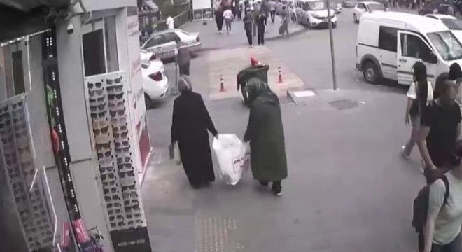 Kameralarda su almak için poşetini kaldırımın orta yerine koyan kadının başına gelenler dakika dakika kaydedildi. Görüntülerde yaşlı kadının poşetini mağazada çıkan iki kadının aldığı ve sakin bir şekilde kalabalığa karıştığı ortaya çıktı. Bu arada ihbar üzerine olay yerine polis geldi. Görüntülerin devamında ise yaşlı kadının yorgun ve panik halinde cadde üzerindeki gözlükçünün standına çarparak yere yıktığı ve bir yanda da yere serpilen gözlükleri toplamaya çalıştığı görüldü.
