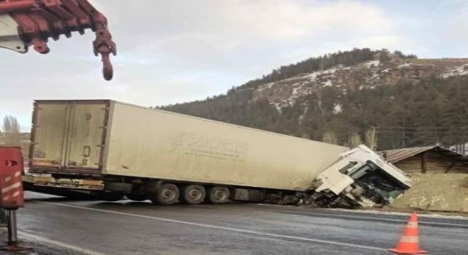 Erzurum-Ardahan karayolunda aşırı buzlanma nedeniyle kayan tır, yol kenarındaki eve çarptı. Kaza nedeniyle yol ulaşıma kapandı.