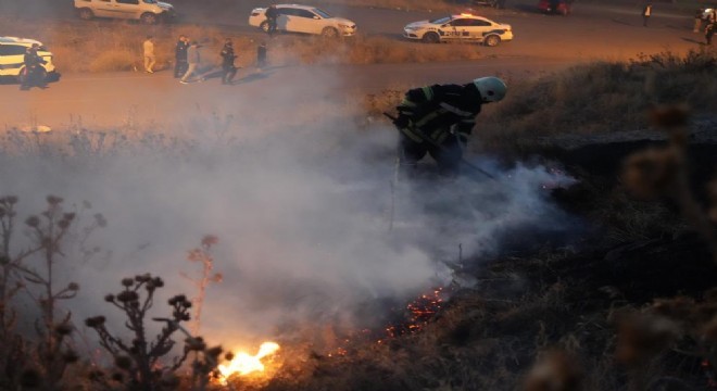 Erzurum'da havai fişek nedeniyle çıkan ot yangını itfaiye ekiplerince söndürüldü.