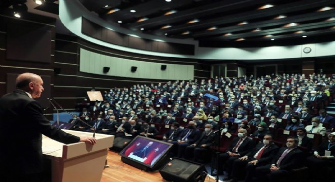 Cumhurbaşkanı Erdoğan, dünya salgınla başlayan sağlık krizi ve onu takip eden ekonomik krizle sarsılırken Türkiye'nin hedeflerine doğru yürüyüşünü hızlandırdığını ifade etti. Ekonomi yönetimlerinin önceliğini yatırım, istihdam, üretim, ihracat, cari fazla odaklı büyüme olarak belirlediklerini dile getiren Cumhurbaşkanı Erdoğan, "İhracatta 2021'i, açıkladık biliyorsunuz, küsurata girmeyeyim, 225 milyar doların üzerinde bir rakamla tamamlamamız doğru yolda ilerlediğimizin ta kendisidir" diye konuştu.