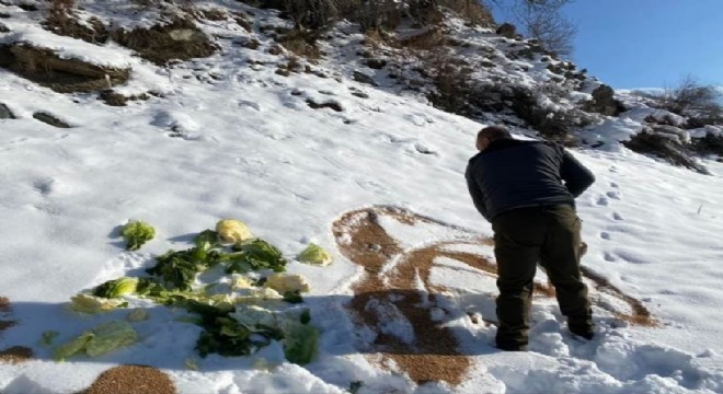 Doğu Anadolu’da yüksek kesimlerinde etkili olan yoğun kar yağışı sonrası yiyecek bulmakta zorlanan yaban hayvanları için doğaya yem bırakıldı.