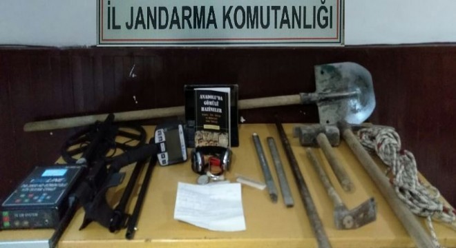 Jandarma ekiplerince İzinsiz kazı yapılan alanda yapılan çalışmalarda 2x2 metre çapında 1 adet çukur bulundu. jandarma kaçak kazıda kullanılan 1 adet metal arama detektörü, 1 adet notebook, 1 adet manivela demiri, 1 adet kürek, 1 adet keser, 1 adet kazma, 1 adet balyoz, 1 adet halat ve 1 adet steteskop ele geçirilerek el kondu.