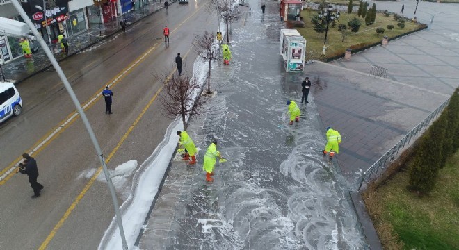 Korona virüsün Türkiye’de görülmesiyle birlikte il genelinde dezenfekte ve temizlik çalışması başlatan Erzurum Büyükşehir belediyesi ekipleri, Cumhuriyet Caddesi’nde kaldırımlar köpüklü su ile yıkadı. Yıkanan cadde ve sokaklar daha sona dezenfekte ekiplerince ilaçlandı.