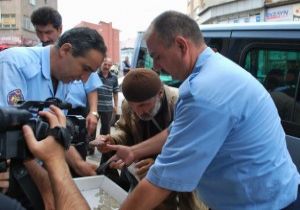 Bir dilenci ise dondurma yerken zabıtalar tarafından yakalandı. Dilencinin dondurma keyfi yarım kaldı.