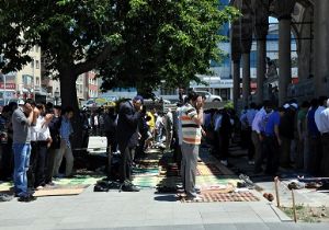 Ramazan ayının ilk gününde ilk Cuma namazını kılmanın manevi heyecanını yaşadıklarını söyleyen vatandaşlar, “İlk Cuma namazında burada olmak istedik. Yaşanan yoğunluğa rağmen dışarı da sergiler üzerinde namaz kılmak bizi son derece mutlu etti. Allah herkesin dualarını kabul etsin” diye konuştular.