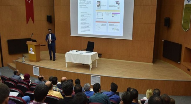 Duyuru, ödev, tartışma panosu ve bloglar gibi öğrenci-öğretmen etkileşimini dijital ortamda etkin bir şekilde organize eden Blackboard uygulamasının tanıtıldığı semineri, Kıdemli Çözüm Mühendisi Mustafa Güçlü verdi.