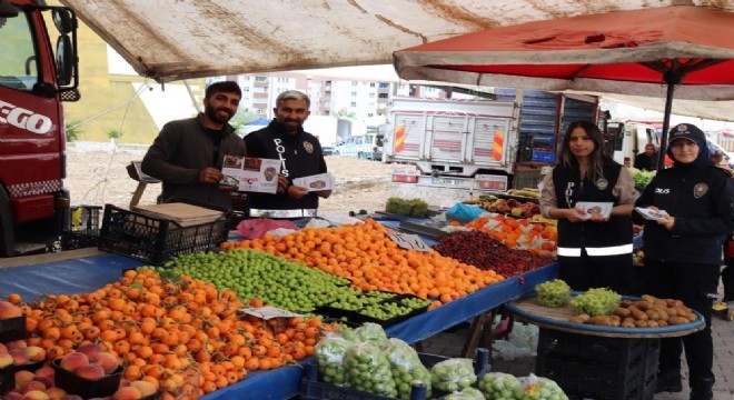 Oltu İlçe Emniyet Müdürlüğü bağlı ekipler tarafından, Oltu ilçe pazar alanında vatandaşlara ve esnaflara yönelik dolandırıcılık, mal varlığına karşı işlenen suçlar ve hırsızlık konuları hakkında el broşürleri dağıtılarak herhangi bir mağduriyet yaşamamaları için gerekli önlemleri almaları konusunda bilgilendirme ve bilinçlendirme çalışmaları yapıldı.