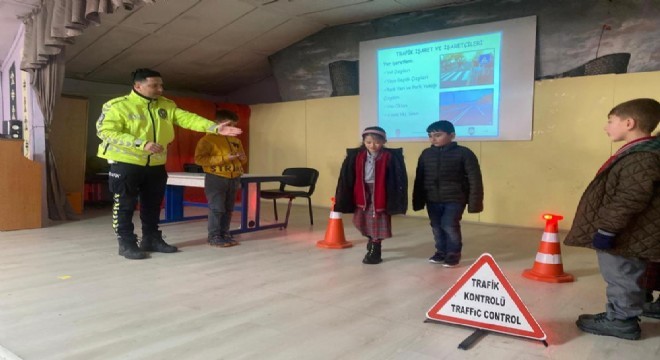 Oltu ilçesinde, polis çocuklara yönelik trafik güvenliği ve trafik bilincinin oluşturulması içerikli eğitim verdi.