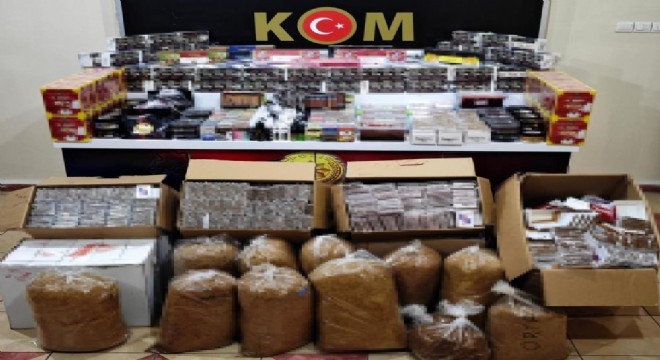 İl Emniyet Müdürlüğü Kaçakçılık ve Organize Suçlarla Mücadele Şube Müdürlüğü ve İliç İlçe Emniyet Amirliği ekiplerince yapılan ortak çalışmalarda, İliç ilçe merkezinde kaçak tütün mamülleri satışı yapan 2 iş yeri, 1 araç, 1 ikamet ve depo olarak kullanılan müştemilatlarında yapılan eş zamanlı aramalarda; 150 adet puro, 123 adet elektronik sigara likiti, 76.040 dal bandrolsüz içi doldurulmuş makaron, 13.400 dal bandrolsüz boş makaron, 54 kg açık kıyılmış tütün, 8.7 kg açık nargile tütünü, 500 gram pipo tütünü, 17 paket 200 gramlık kutu nargile melası, 253 paket 35 gramlık kutu nargile melası, 24 paket 400 gramlık toplam 9.6 kg kaçak çay ele geçirildi.