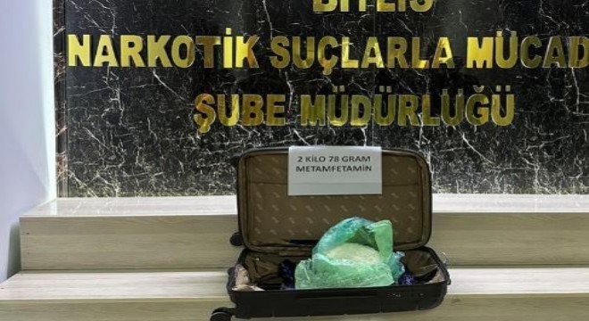 Bitlis Valiliğinden yapılan açıklamada, Tatvan’da yol kontrolleri esnasında durdurulan bir otobüs içerisinde narkotik köpeği Gill ile birlikte arama yapıldığı belirtildi. Açıklamada, “Yapılan aramada, valiz içerisine zulalanmış tek parça halinde 2 kilo 78 gram metamfetamin maddesi ele geçirilmiş, olay ile ilgili uyuşturucu madde ticareti yapma suçundan gözaltına alınan otobüs içerisinde yolcu olarak seyahat eden yabancı uyruklu D.N.A. isimli şüpheli şahıs çıkarıldığı adli mercilerce tutuklanarak cezaevine gönderilmiştir. Uyuşturucu madde imalatı, kaçakçılığı ve kullanımına karşı yürütülen kararlı mücadelemiz devam edecektir” denildi.
