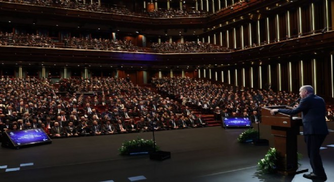 Erdoğan, ‘Biz hiçbir zaman kısa vadeli hedefler peşinde koşmadık, koşmuyoruz. Günü kurtarmanın değil, istikbali şekillendirmenin derdindeyiz. 'Büyük ve Güçlü Türkiye' hedefini gerçeğe dönüştürmenin çabasındayız" ifadesini kullandı