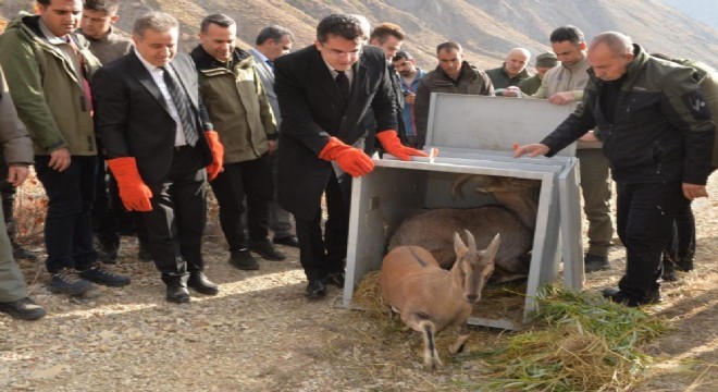 Özel kafeslerde Tortum ilçesindeki kırsal alana getirilen yaban hayvanları, Vali Okay Memiş, Tortum Kaymakamı Fatih Bayram ve Tortum Belediye Başkanı Muammer Yiğider'in katılımıyla doğal ortamlarına bırakıldı.