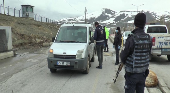 Erzurum’da polis ve jandarma ekipleri Korona virüs tedbirleri kapsamında şehir giriş ve çıkışlarında kontrollerini sürdürüyor.