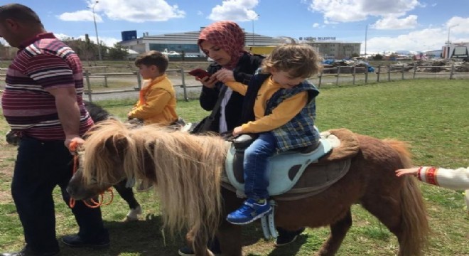 At ve midillileri daha önce sadece televizyonda gören ve içlerinden bazı miniklerin “Ben Ertuğrul oldum” diyerek annelerine heyecanlarını yansıtmaları, yüzleri gülümsetti.