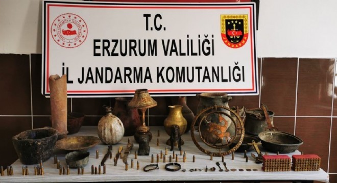 Erzurum’da jandarma tarafından bir kişinin evinde yapılan aramada çok sayıda tarihi eser ele geçirildi.