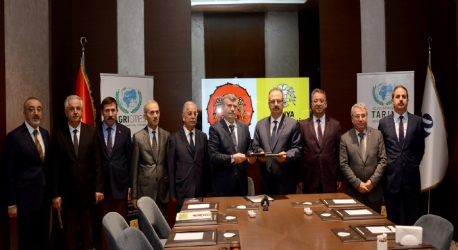 Türkiye’de pek çok birliğin olduğunu ancak bugüne kadar uluslararası anlamda tarımla ilgili bir birliğini mevcut olmadığını söyleyen Başkan Tahir Akyürek, “Dünyadaki önemli tarım şehirleriyle kurulan temaslar sonucunda böyle bir birliğin kurulmasının, hem teknoloji alışverişi açısından hem deneyim ve bilgi kültürü aktarımı açısından çok faydalı olacağı ortaya koyuldu. Böyle bir birliğin kurulması aynı zamanda ülkeler ve şehirlerarası ticaretin, işbirliğinin artmasına vesile olacaktır. Ciddi bir ön hazırlık yapıldı. İçişleri Bakanımıza da Konya’ya geldiklerinde bu konudan bahsettik. Sayın bakanımız, böyle bir birliğin faydalı olacağını ifade etti. Bugün Konya merkezli bir Uluslararası Tarım Şehirleri Birliği’nin kuruluş sürecini Konya’dan başlatıyoruz. Şehirlerimiz, ülkemiz ve tarımsal üretimle meşgul olan insanımız açısından hayırlı olmasını diliyorum” dedi. Başkan Akyürek, Konya merkezli Uluslararası Tarım Şehirleri Birliği kurulması ile ilgili imzalanan müracaat dosyasını İçişleri Bakanlığı’na gönderilmek üzere Konya Valisi Yakup Canbolat’a teslim etti.