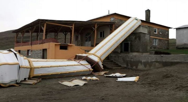 Horasan ilçesinde aniden bastıran şiddetli fırtınada birçok ev yıkılırken, ...