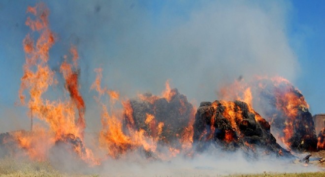 Erzurum’un Horasan İlçesine bağlı Yörükatlı Köyünde 15 bin balya ot yanarak kül oldu.
