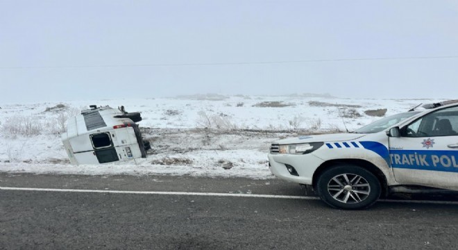 Horasan yolunda minibüs devrildi