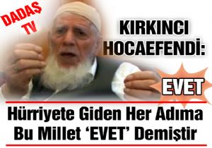 "Hürriyete giden her adıma, bu millet daima 'evet' demiştir." sözleri ile referanduma destek veren Mehmet Kırkıncı Hocaefendi, Türk halkının sandık başında vicdanının sesine kulak vererek, sağduyulu hareket edeceği belirtti.