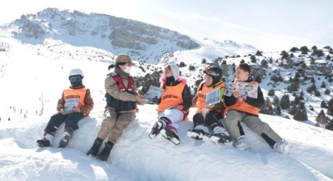 Erzincan İl Jandarma Komutanlığı ekipleri tarafından Ergan Dağı Kış Sporları ve Doğa Merkezi ziyaretçilerine, KADES uygulaması tanıtıldı.