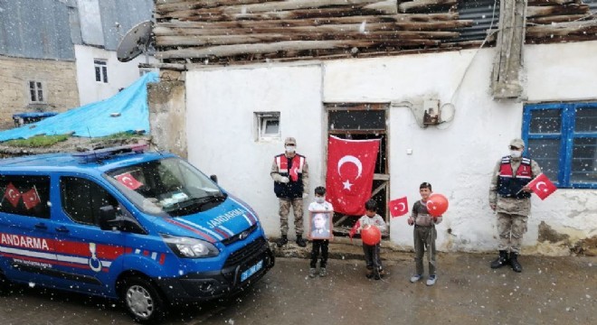 Jandarma ekipleri, ilçe merkezleri ve köylerde covid-19 salgını kapsamında evlerinde kalmak zorunda olan çocuklara köylere giderek sürpriz yaptı.