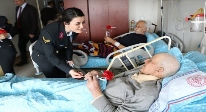 Jandarma personeli hastalara geçmiş olsun dileklerini iletirken, çocuklara oyuncak hediye büyüklere karanfil dağıtıp sohbet ettiler.