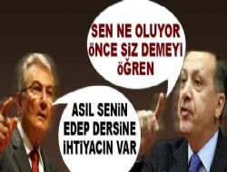 ''Bunları hazmedemeyenler var. Gönlü vicdanı kara olanlar tabi ki bunu hazmedemeyecekler. Mazisi kara olanlar, tabii ki bunu hazmedemeyecekler. Ama biz huzurluyuz. Bizim temizliğimize leke sürmeye gayret eden Sayın Baykal, bana dün edep dersi vermeye kalkıyor. Önce bu ülkede bir partinin genel başkanının (sen ve siz) ifadelerini kullanmasının ne anlama geldiğini öğrenmesi lazım. Bak ben sana (Sayın) diyorum. Sayın Baykal, Anayasa Mahkemesi seni ve sizi mahkum etti. Yaklaşık 1 trilyonluk hazinenin parasını nereye harcadın, bunun hesabını ver. Bunu ödediniz. Bunu nereye harcadınız? Siz tescillisiniz. AK Parti'ye leke süremeyeceksiniz. Bizim Deniz Feneri ile şunla bunla alıp veremediğimiz yok. Biz o konuda rahatız. Partimizi kurduğumuz günden itibaren, her harcadığı kuruşu, partimize giren çıkan web sitemize girer. Bize leke atamazsınız, güneşi balçıkla sıvayamazsınız.''