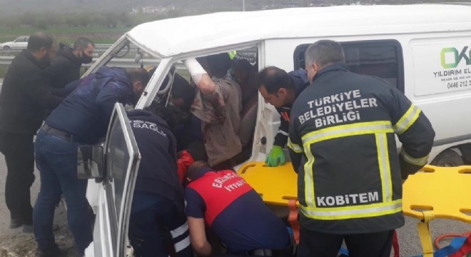 Erzincan’da aydınlatma direğine çarpan kamyonetin sürücüsü araç içerisinde sıkışarak ağır yaralandı. Ekipler, araçta sıkışan sürücüyü kurtarmak için yoğun çaba sarf etti.