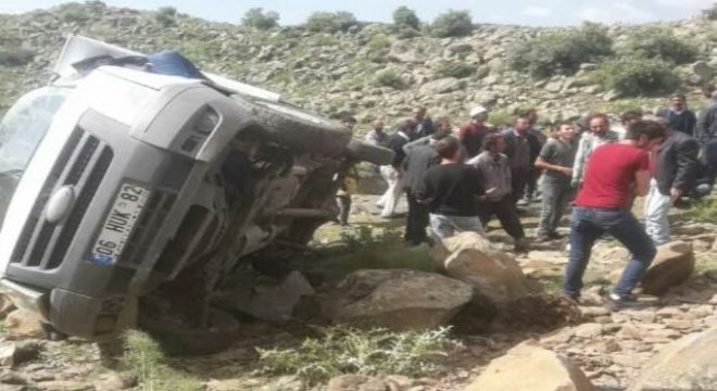 Tekman ilçesinde 17 kişiyi taşıyan kamyonet, sürücüsünün direksiyon hakimiyetini kaybetmesi sonucu şarampole yuvarlandı. Kazada 17 kişi yaralandı.