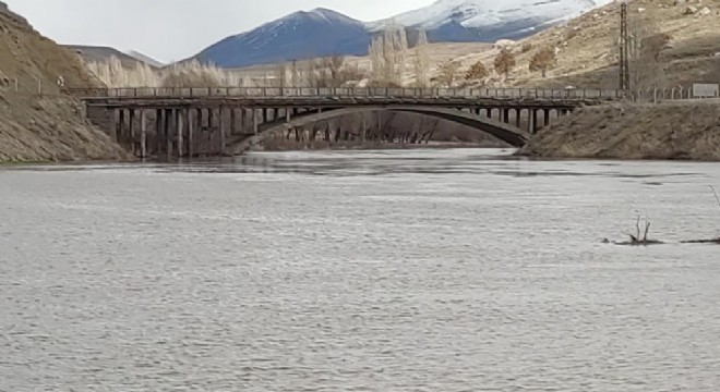 Erzurum’un Aşkale ilçesinden geçen Karasu Nehri, eriyen kar suları ve son günlerdeki yağışlı havanın etkisiyle coştu.