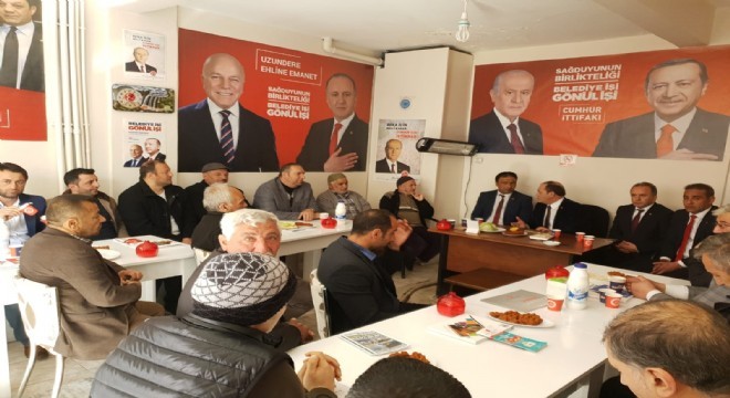 MHP Erzurum İl Başkanı Naim Karataş seçim çalışmalarını Uzundere’de sürdürdü. Cumhur İttifakı Kapsamında MHP’ye bırakılan İspir ve Uzundere’de hemen hemen her fırsatta program düzenleyen Karataş, “Vakit çalışma vaktidir. Genel Başkanımıza sözümüz var. Cumhur İttifakını açık ara galip getirmek zorundayız” dedi.