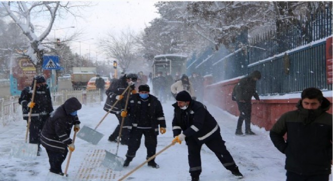 Erzurum’da birkaç gündür etkisini sürdüren kar yağışı ile birlikte Aziziye ...