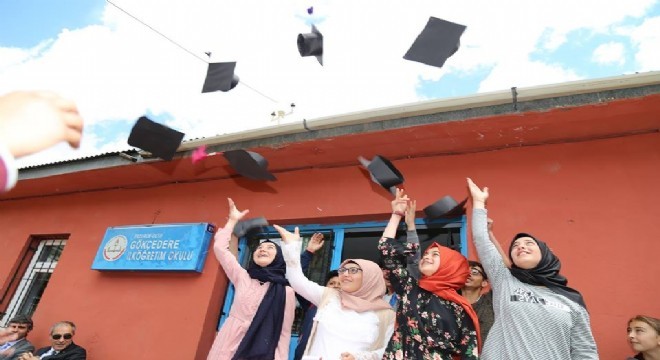 Oltu’ya bağlı Gökçedere İlköğretim Okulu’nda karne heyecanı yaşandı. Bu yıl mezun olan 8. sınıf ve anasınıfı öğrencileri, öğretmenlerinin de yardımıyla yaptıkları karton keplerini büyük umutlarla havaya attı.