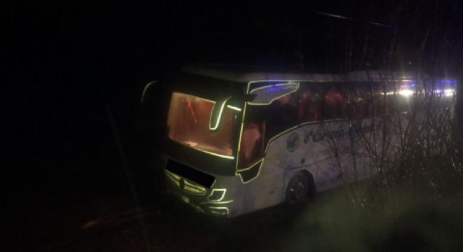 Erzincan'da yağış nedeniyle kayganlaşan yoldan çıkarak tarlaya giren otobüsteki 2 yolcu yaralandı.