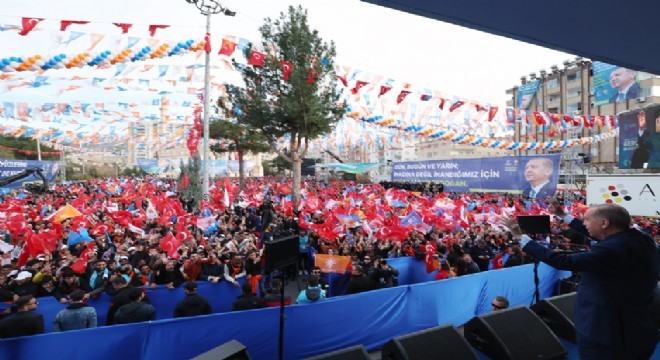 Mardin'in Türkiye'nin birlik ve beraberliğinin timsali olduğunu kaydeden Cumhurbaşkanı Erdoğan, "Biz, sizi çok seviyoruz, size inanıyoruz. İnanıyorum ki sizler de bize inanıyorsunuz. İnşallah 31 Mart'tan sonra bunlara, yerel yönetimlerle işbirliği içinde çok daha fazlasını ekleyeceğiz. Büyükşehir ve ilçe belediye başkan adaylarımızı sizlere emanet ediyorum. 31 Mart akşamı hep birlikte inşallah ben İstanbul, Ankara'dan takip edeceğim, Mardin'de ne oldu? Buraya Şırnak'tan geldim biliyorsunuz, Şırnak'ta ne oldu? İzleyeceğim. İnanıyorum ki sizler de o akşam bütün Türkiye'yi izleyeceksiniz. Sizlerin adaylarımıza vereceğiniz güçlü destekle bu yolda yürüyeceğiz" şeklinde konuştu.
