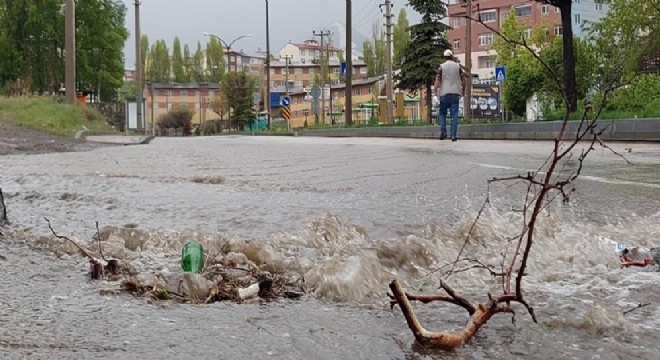 Erzurum’da sağanak yağış hayatı olumsuz şekilde etkiledi.
