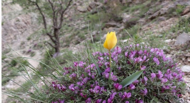 Oltu ilçesinde Sitare Dağı'nda açan sarı laleler, lale dağı olarak da bilinen Sitare Dağı'nı süslemeye başladı.