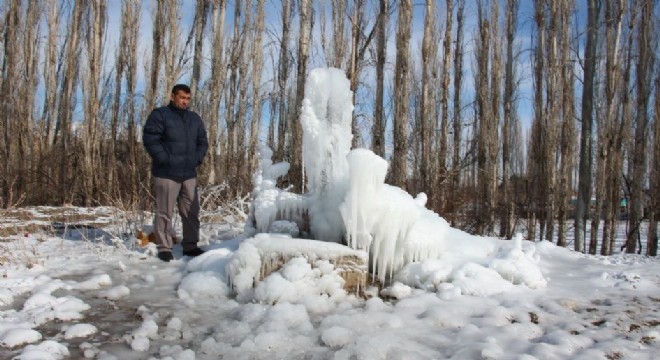Dondurucu Sibirya soğukları Erzurum’un Oltu ilçesinde etkisini sürdürüyor. Her yerin buz kestiği Oltu’da çeşmeler donarken, köy dereleri de buz tuttu.