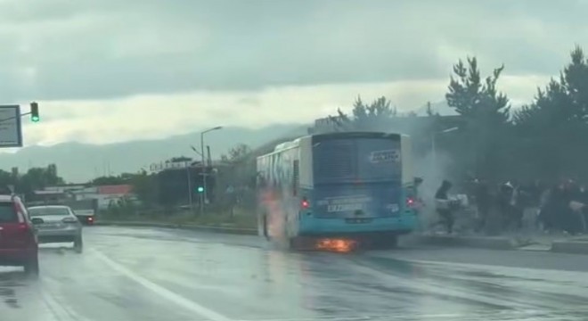 Erzurum'da hareket halindeki belediye otobüsü bir anda alev aldı, yolcular panikle kendilerini dışarı attı.
