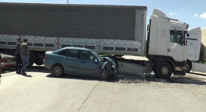 Erzurum Ilıca yolu üzeri Organize Sanayi Bölgesi’nde sürücüsünün ışık ihlali yaptığı otomobil tırın altına girdi. Feci kazada sürücü hafif yaralandı.