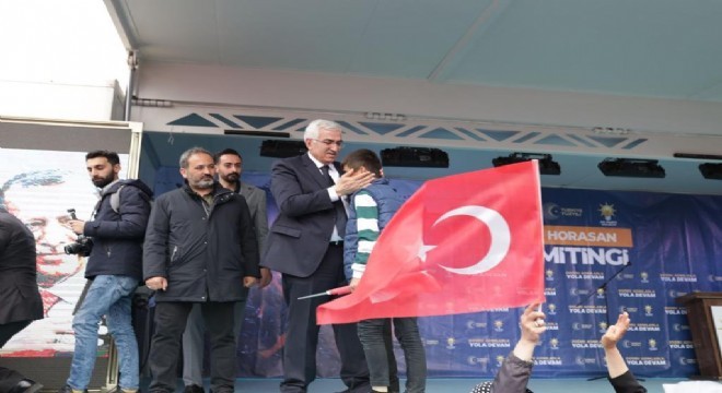 AK Parti Erzurum Milletvekili Adayı Mehmet Emin Öz, ise konuşmasında Cumhurbaşkanı AK Parti Genel Başkanı Recep Tayyip Erdoğan’ın İslam dünyası için önemine değindi. Cumhurbaşkanı Erdoğan’ın, 21 yıldır dünyanın en yardımsever ülkesi olarak Türkiye'yi ön sıralara çıkardığını, bunun ise bir inancın sonucu olduğunu kaydeden Öz, “Şu anda dünyanın birçok yerinde bu mazlum coğrafyalar gözünü dikmiş 14 Mayıs günü yaşanacak bu seçim sonuçlarını bekliyorlar ve en az sizler kadar, en az bizler kadar liderimize, siyasi hareketimize dua ediyorlar. Bu coğrafyaları gözü yaşlı bırakmamak için Türkiye üzerinde, milletimiz üzerinde oynanan oyunları bertaraf etmek için inşallah birbirimize daha sıkı bir şekilde sarılacağız ve Türkiye'yi o karanlık günlerine, o eski Türkiye'ye döndürmeye çalışanlara bu fırsatı inşallah vermeyeceğiz. İnanıyoruz ki 14 Mayıs tarihi sonrasında Türkiye şimdiye kadar büyüdüğünden daha da ileri noktaya gelecek konuma erecektir. Bunlar ancak AK Parti iradesi ile mümkündür” diye konuştu.