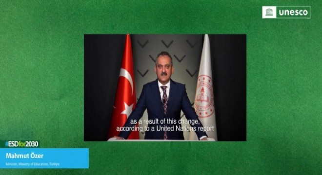 Milli Eğitim Bakanı Mahmut Özer, iklim değişikliği konusunda Türkiye'nin eğitim alanındaki plan ve çalışmalarını Birleşmiş Milletler (BM) İklim Değişikliği Çerçeve Sözleşmesi 27. Taraflar Konferansı'nda (COP27) video mesajla anlattı.