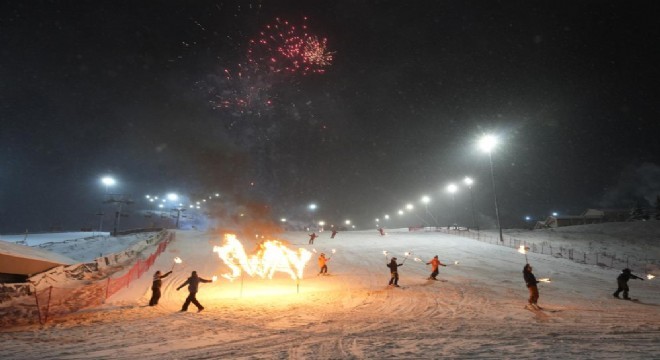 Kış turizminin gözde mekanlarından Erzurum Palandöken'de yılbaşı tatilini geçiren yerli ve yabancı misafirler, yeni yıla meşaleli kayak gösterisiyle girdi.